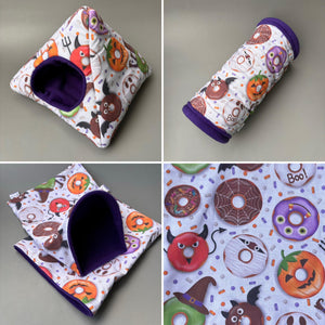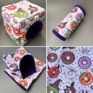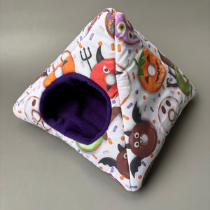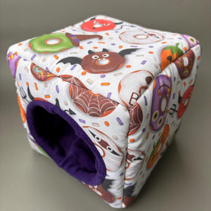 LARGE Halloween donuts cosy bed. Cosy cube. Cuddle Cube. Snuggle house. Fleece hidey. Padded house for guinea pigs.