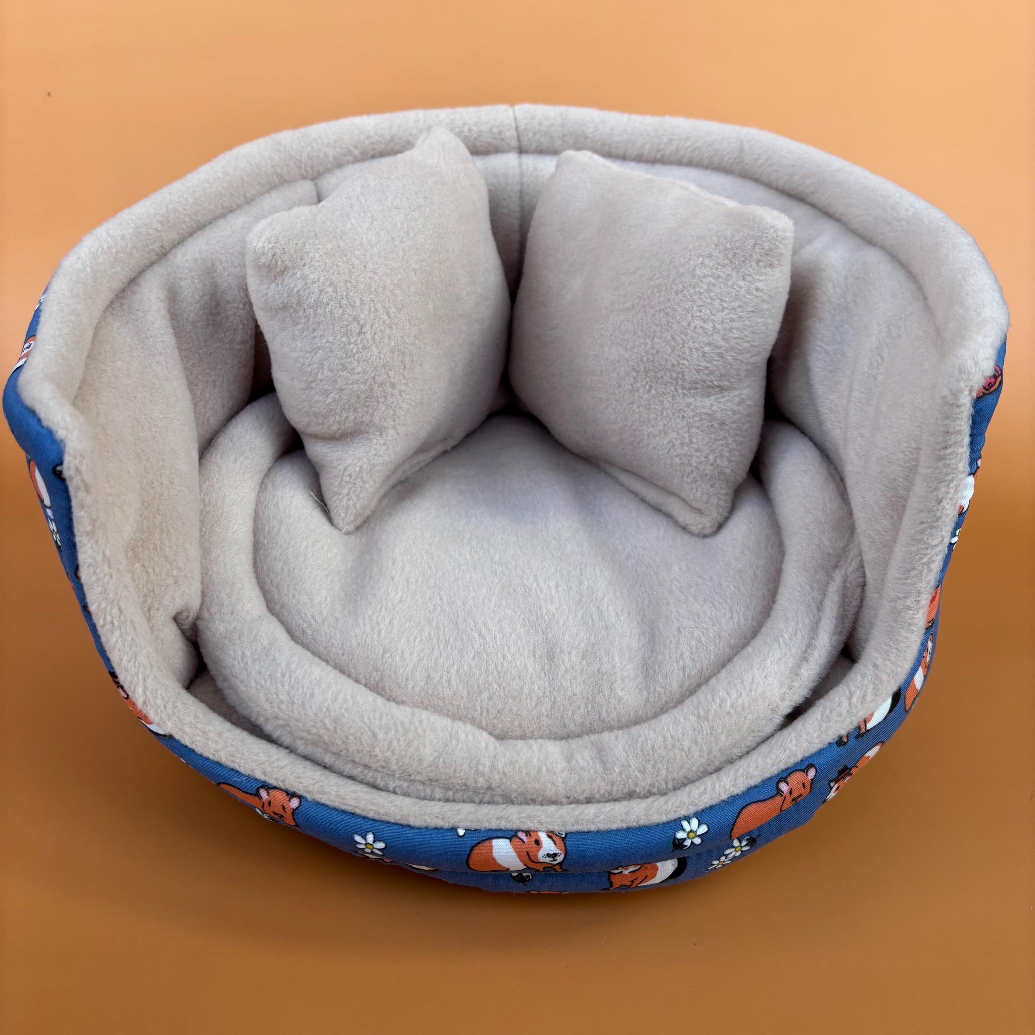 These large cuddle cups (approx 30cm/12") are ideal for guinea pigs or rabbits. They are soft and make a perfect sleeping spot. There is a removable round cushion (easy to pop in the wash) and two mini cushions (easily thrown around the cage!).