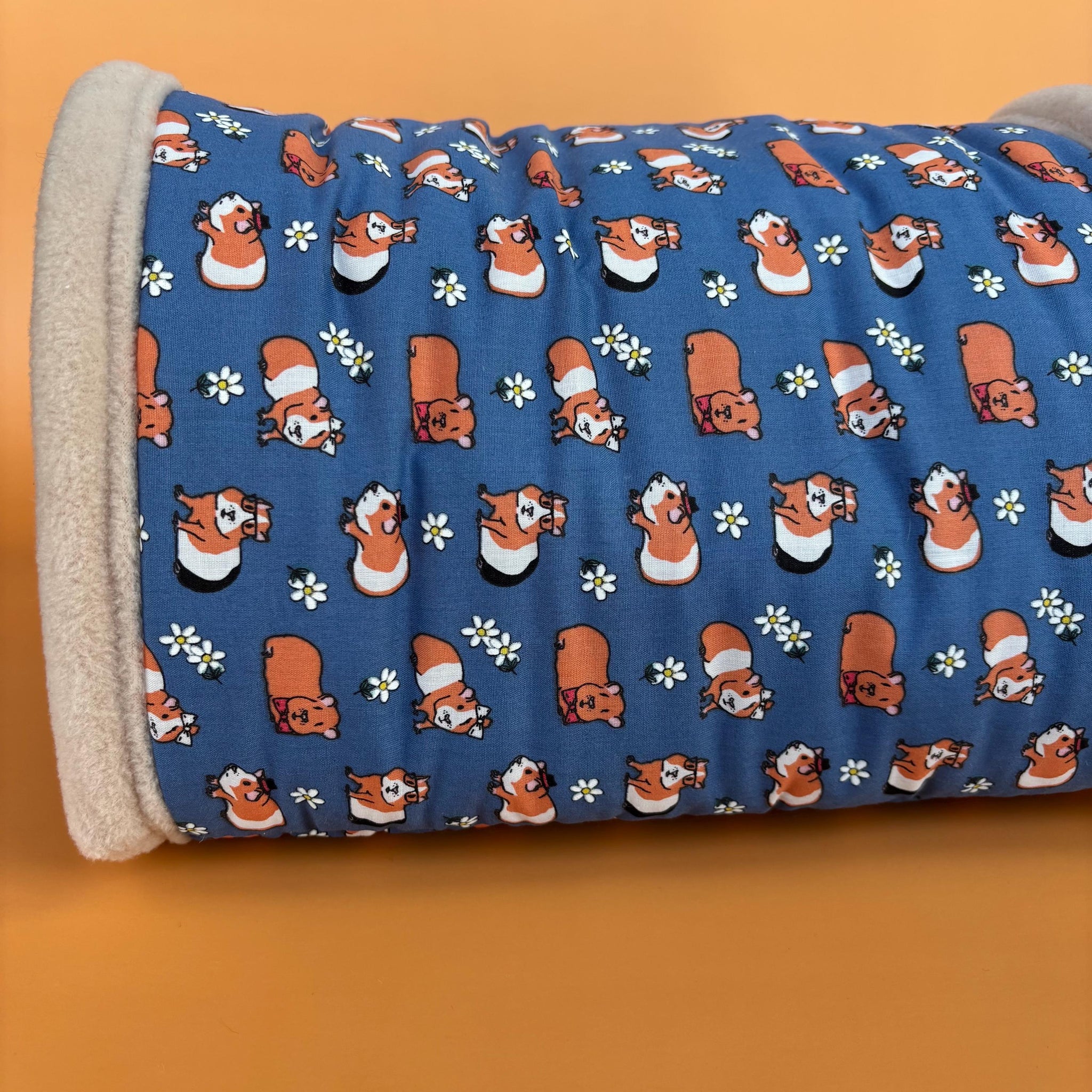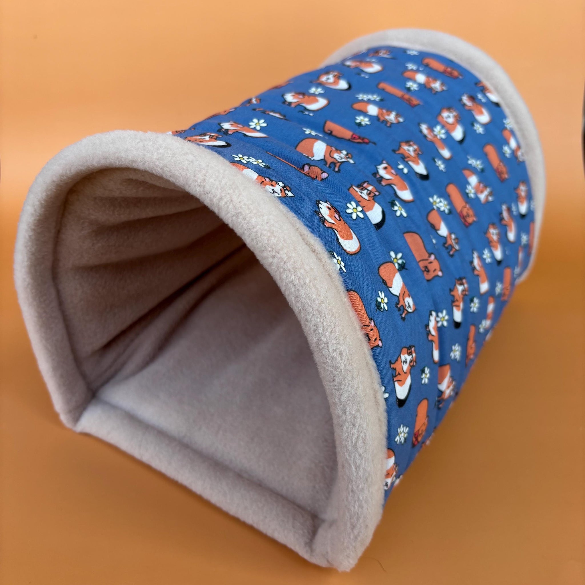 These padded tunnels are great for your little one to run and hide in, they are larger than the regular tunnels so ideal for any chonky piggies. The exterior is made of polycotton with soft anti-pill fleece on the inside. There is an inner layer of padding to help keep the tunnels shape as well as add softness and comfort. Three supports also keep the tunnel open with one at each opening and in the middle.