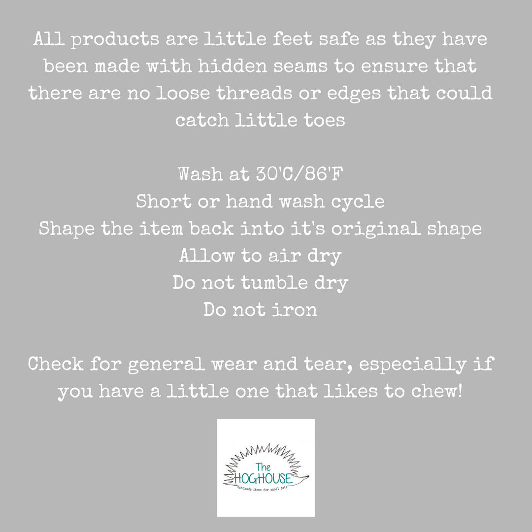 ✂️ SAFETY: All products are little feet safe; they have been made with hidden seams to ensure that there are no loose threads or edges that could catch little toes. All items are made in a smoke free environment shared with a few hedgehogs.
