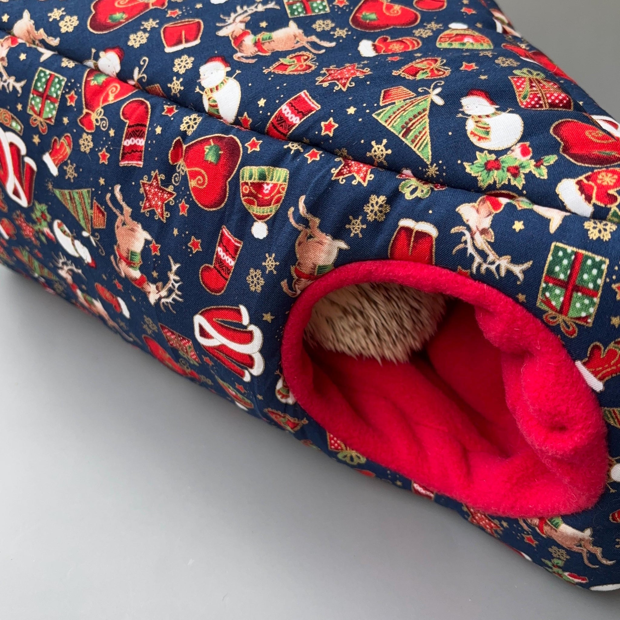 The set has a cosy house, padded tunnel with 3 internal supports to keep it open, two toys and a snuggle sack. They are made from cotton fabric and soft smooth fleece.